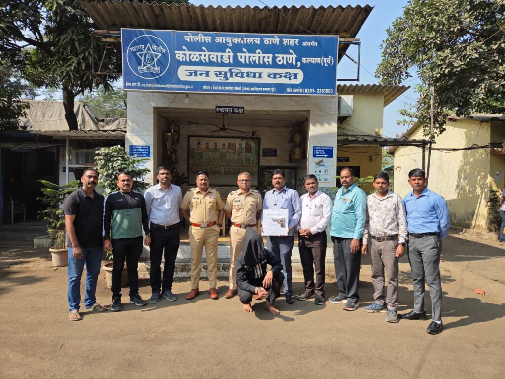 सदरची यशस्वी कामगिरी पोलीस आयुक्त आशुतोष डुंबरे, अपर पोलीस आयुक्त, पुर्व प्रादेशिक विभाग कल्याण संजय जाधव, पोलीस उप आयुक्त, परि.०३ कल्याण अतुल झेंडे, सहा पोलीस आयुक्त, कल्याण विभाग कल्याणजी घेटे, वरिष्ठ पोलीस निरीक्षक कोळसेवाडी पोलीस ठाणे हेमंत गुरव, पोलीस निरीक्षक (गुन्हे) गणेश न्हायदे यांच्या मार्गदर्शनाखाली कोळसेवाडी पोलीस ठाणे गुन्हे शोध पथकाचे सहा. पोलीस निरीक्षक संदिप भालेराव, पोहवा विशाल वाघ, पोहवा गोरखनाथ घुगे, पोहवा सचिन आव्हाड, पोहवा दत्तू जाधव, पोना दिलीप कोती यांनी केली आहे.